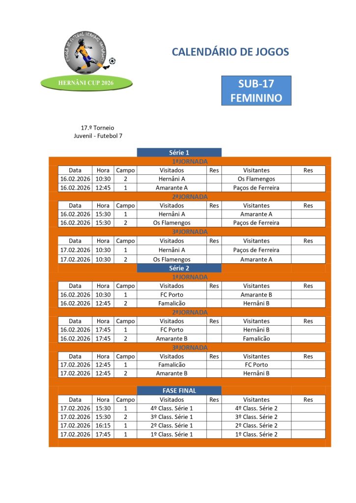 CALENDÁRIO DE JOGOS -SUB-17 – FEMININO -HERNANICUP-2026